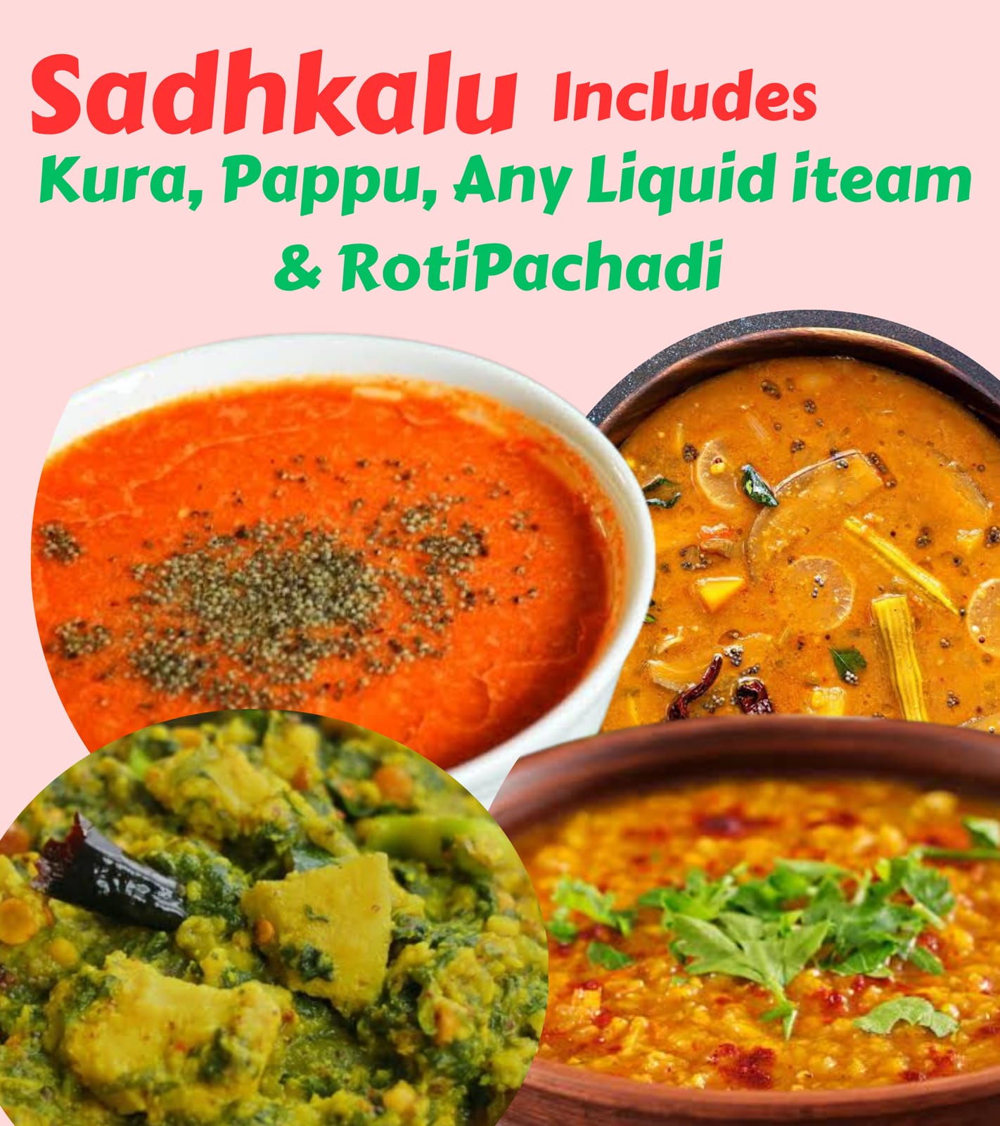 • Kandi Pappu: Toor dal cooked with leafy greens & Vegitables seasoned with mustard seeds, curry leaves, and tamarind.